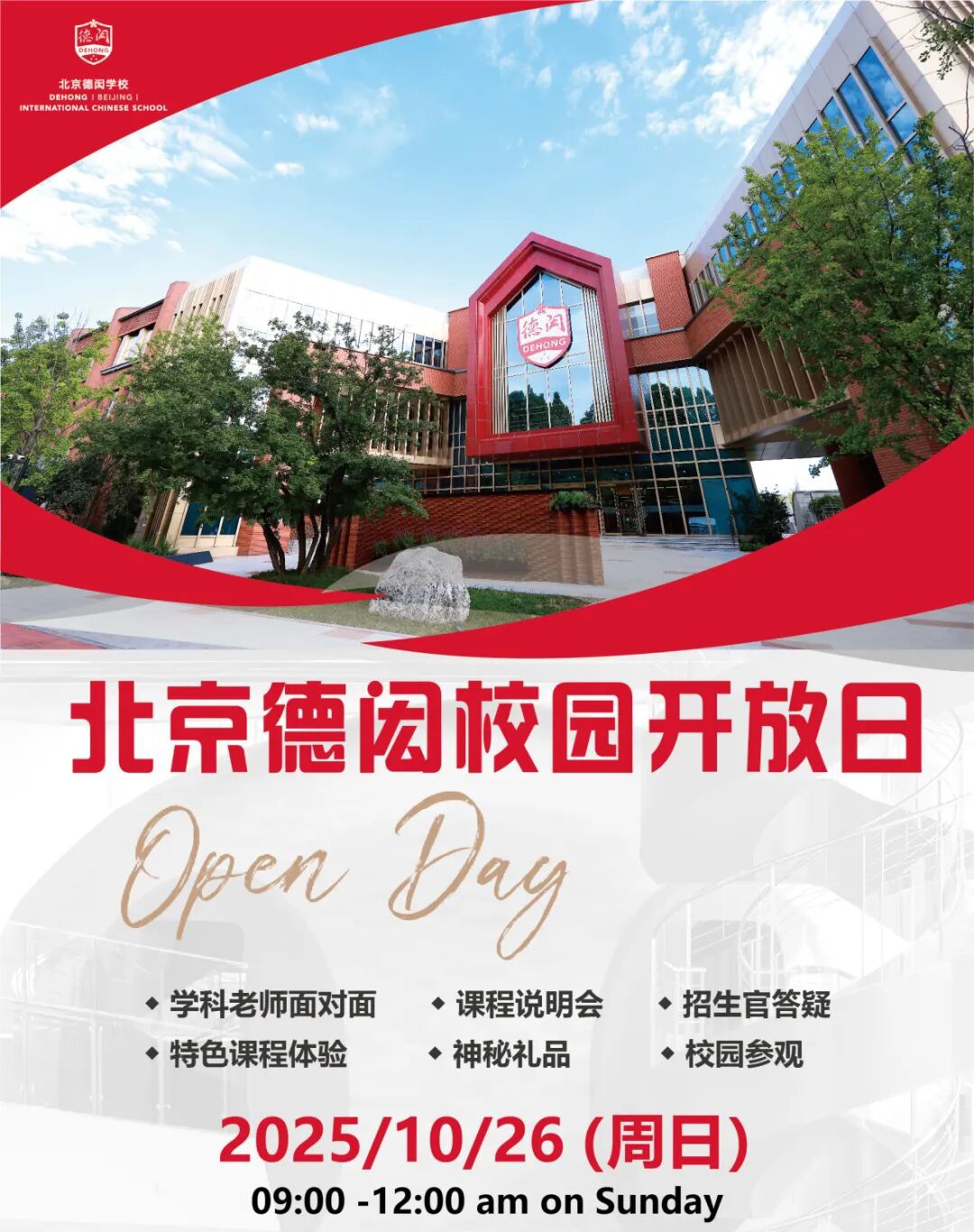 親愛的家長們,北京德閎學校校園開放日即將于 2025 年 10 月 26 日(周日)09:00 - 12:00 精彩開啟!作為一所秉持先進教育理念的學校,德閎邀您走進校園,全方位感受國際化教育的獨特魅力。